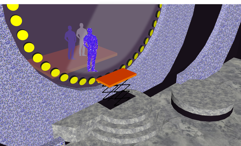 実は手前と奥にリフター(オレンジ)があり、その間に板(グリーン)が渡してあります。