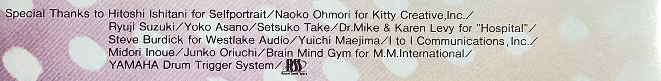 当時このアルバムのPRではRSS自体はほとんど紹介されていなかったと思いますし、Special Thanksへロゴがあるだけなので